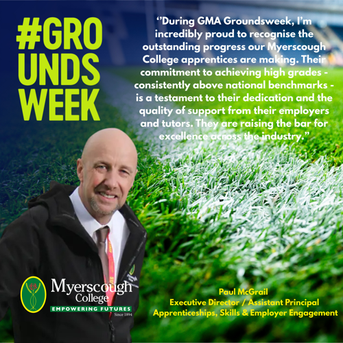 Paul McGrail is Myerscough’s Executive Director / Assistant Principal - Apprenticeships, Skills & Employer Engagement, and said: ‘’During GMA Groundsweek, I’m incredibly proud to recognise the outstanding progress our Myerscough College apprentices are making.