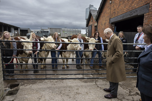 King Charles arrived at Lee Farm and was introduced to members of the Duchy of Lancaster team, before meeting Myerscough Chief Executive and Principal, Wes Johnson, and Andrea Gardner, Director of Farm Operations and Innovation.