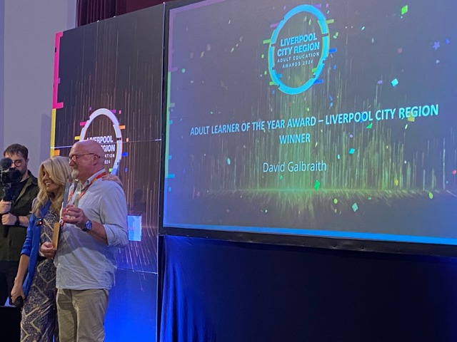 David Galbraith, an Inclusive Learning Advisor at Myerscough College, was named as the city region’s first ever winner of the Adult Learner of the Year Award for Liverpool City Region at the recent event, which saw the academic success of adult learners funded through Mayor Steve Rotheram and the Liverpool City Region Combined Authority (LCRCA) celebrated.