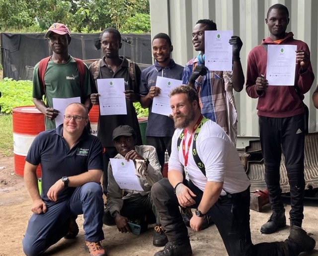James Willoughby and Steve Slater from Myerscough’s main Preston campus, along with Steve Williams, workbased arboriculture tutor, have spent a week in the country, as part of a partnership with Myerscough's Adult Skills team and Mere Plantations, with the aim to provide their staff in the country with extra skills, improve the calibre of the local workforce and increase income for the local forest fringe communities.