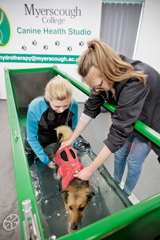 Hydrotherapy uses the unique properties of water to support rehabilitation, manage pain, and improve overall fitness. At Myerscough, we utilise an underwater treadmill, allowing precise control of water depth to suit each dog’s individual condition and stage of recovery.