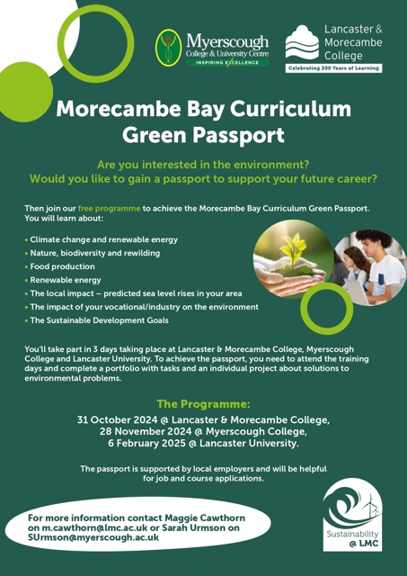 Myerscough College is also involved in the Morecambe Bay Curriculum Green Passport initiative.