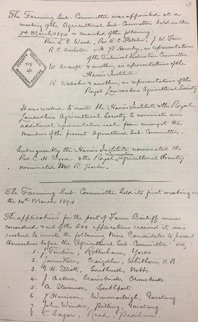 Four farms were considered, and it was Home Farm, at Hutton, that was deemed to be most suitable. The land comprised of around 147 acres, mainly of pasture and meadowland, along with two recently built farm buildings and two houses on site. The land was inspected on January 31st, 1894 and a deal was done with the land owner, Mr Lawrence Rawstorne, to take the farm on an initial twenty year lease at a rent of £426 per annum (around £40,000 a year in today’s money). On March 14th, the Farming Sub-Committee met for the first time, and possession of the farm was taken on March 25th.