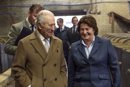 The King commenced a tour of Lee Farm’s sheep barn, which is currently full of triplet and twin bearing ewes bedded on home grown willow, ahead of main Lambing Season in the coming weeks.