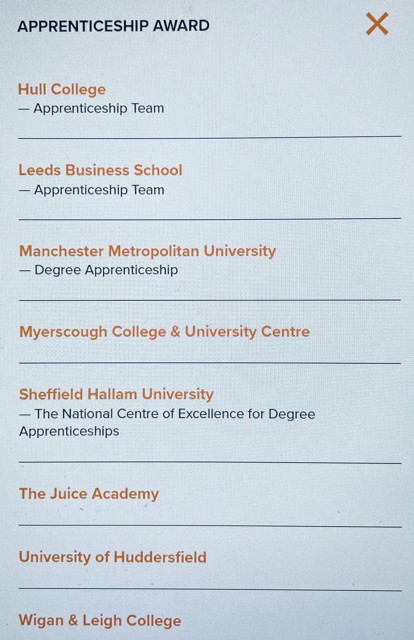 Myerscough’s apprenticeship provision was also celebrated with a nomination in the same category last year, while Myerscough won overall Further Education College of the Year at the event in 2022.